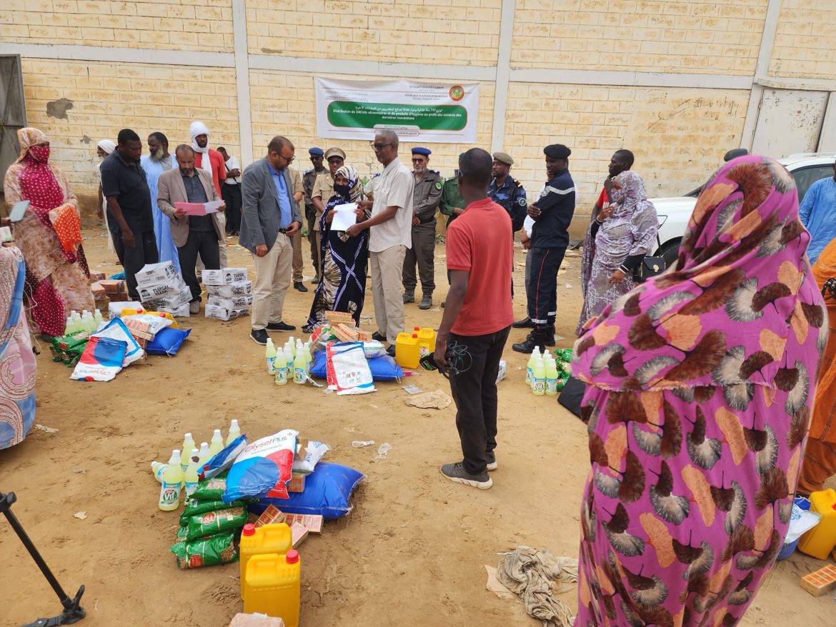 أشرف المفوض المساعد لحقوق الإنسان والعمل الإنساني والعلاقات مع المجتمع المدني السيد الرسول ولد الخال اليوم الاربعاء بمدينة روصو رفقة والي اترارزة السيد محمد ولد احمد مولود على توزيع 340 سلة غذائية ومواد للنظافة وللوقاية من الباعوض مقدمة من طرف مفوضية حقوق الإنسان والعمل الإنساني والعلاقات مع المجتمع المدني لصالح الأسر المتضررة من الفياضنات الأخيرة.