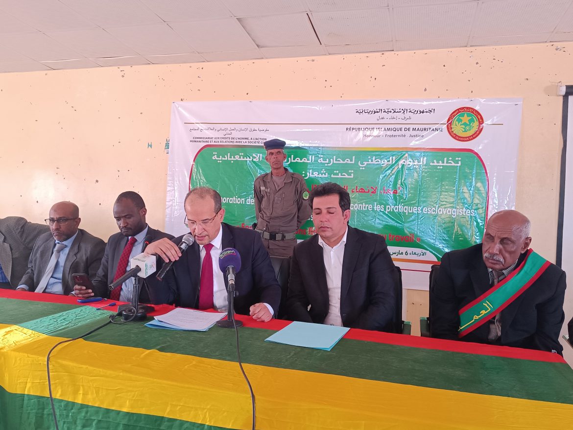 خلدت مفوضية حقوق الإنسان و العمل الانساني والعلاقات مع المجتمع المدني ، اليوم الاربعاء بمدينة اكجوجت عاصمة ولاية إنشيري ، اليوم الوطني لمحاربة الممارسات الاستعبادية تحت شعار : “معا لإنهاء الاستغلال في العمل” .معالي مفوض حقوق الإنسان و العمل الانساني و العلاقات مع المجتمع المدني ، السيد الشيخ احمدو ولد احمد سالم ولد سيدي ، في كلمته الافتتاحية أكد على أنه عملا بالتوجيهات السامية لفخامة رئيس الجمهورية السيد محمد ولد الشيخ الغزواني، وتجسيدا لتعهداته في مجال حقوق الإنسان، يطيب لي أن أشرف معكم، من مدينة أكجوجت العريقة، على حفل إطلاق الأنشطة المخلدة لليوم الوطني لمحاربة الممارسات الاستعبادية، الذي يصادف السادس من مارس من كل سنة، والمنظم تحت شعار “معا لإنهاء الاستغلال في مجال العمل”.و أضاف معالي المفوض ، إن تخليد هذا اليوم الوطني الهام يعد تعبيرا صادقا عن الإرادة الصارمة للحكومة وعزمها على مواصلة الجهود الرامية للقضاء على جميع أشكال ومظاهر الاتجار بالأشخاص، خاصة الأشكال المعاصرة للرق، تماشيا مع سياستنا الوطنية في مجال حقوق الإنسان من جهة، ووفاء لالتزاماتنا الدولية من جهة أخرى.