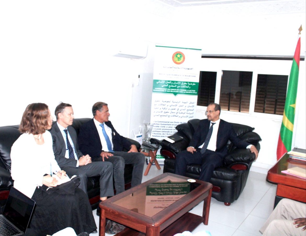 استقبل معالي مفوض حقوق الإنسان والعمل الإنساني والعلاقات مع المجتمع المدني السيد الشيخ أحمدو ولد سيدي، مساء اليوم الأربعاء بمكتبه، السيد خوان فرناندو لوبيز أغويلار عضو البرلمان الأوروبي رئيس لجنة الحريات المدنية والعدالة والشؤون الداخلية في البرلمان الأوروبي.وتناول اللقاء بحث مختلف أوجه التعاون بين بلادنا والاتحاد الأوروبي وسبل تعزيزه وتطويره والقضايا ذات الاهتمام المشترك.حضر اللقاء المفوض المساعد لحقوق الإنسان والعمل الإنساني والعلاقات مع المجتمع المدني السيد الرسول ولد الخال ومدير الهيئة الوطنية لمحاربة الاتجار بالأشخاص وتهريب المهاجرين السيد التراد ولد عبد المالك والسيد سيدي محمد ولد الإمام مدير حقوق الإنسان والسيدة توت منت يرگ المديرة المساعدة للهيئة الوطنية لمحاربة الاتجار بالأشخاص وتهريب المهاجرين. كما حضره عن الجانب الأوروبي سعادة السفير رئيس بعثة الاتحاد الأوروبي المعتمد في بلادنا غويليم جونز.