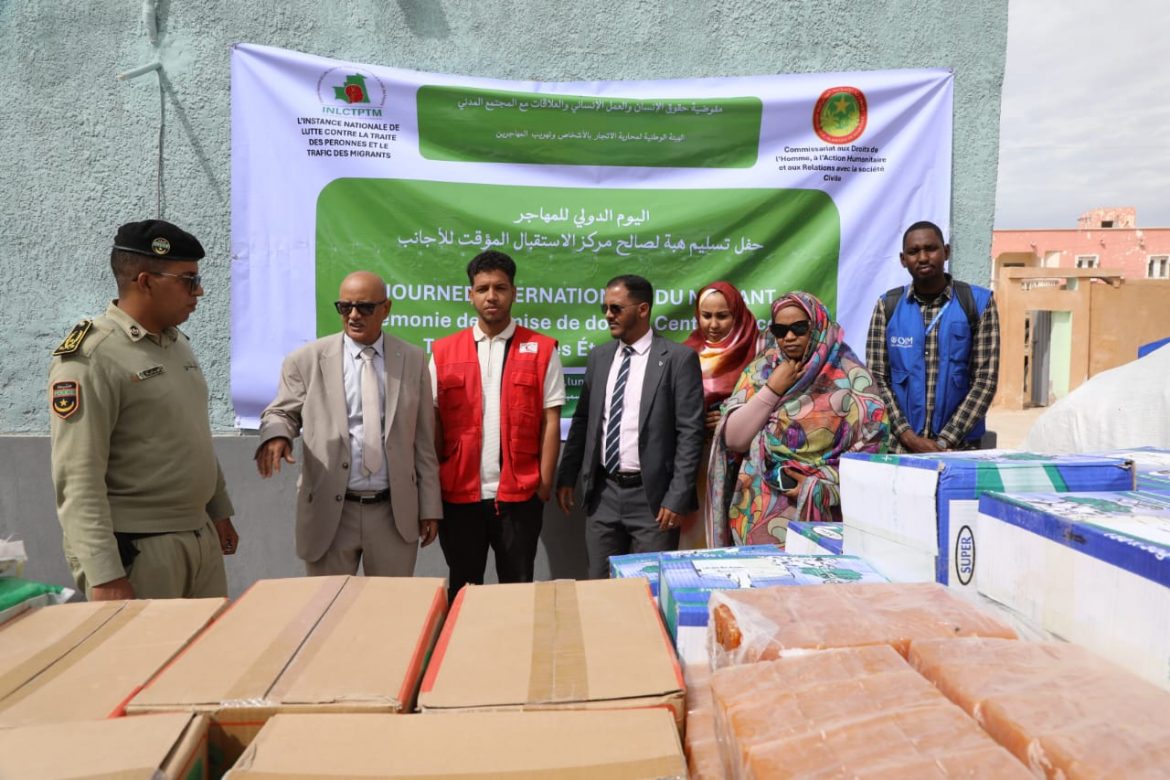 نظمت الهيئة الوطنية لمحاربة الاتجار بالأشخاص وتهريب المهاجرين، اليوم الاثنين في نواكشوط، حفلا لتسليم هبة لصالح مركز استقبال الأجانب، وذلك تزامنا مع إحياء اليوم الدولي للمهاجرين.وتتكون الهبة من مواد غذائية وتجهيزات، شملت كميات من السردين، والأرز، والبسكويت، وأفرشة، وحقائب، وناموسيات، وأجهزة تعقيم، ومواد للنظافة، وأحذية.