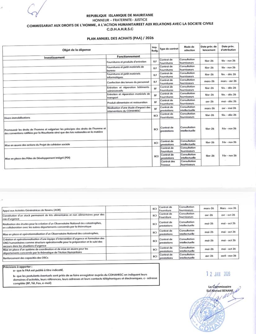 Accueil Announces Plan annuel des Achats 2026