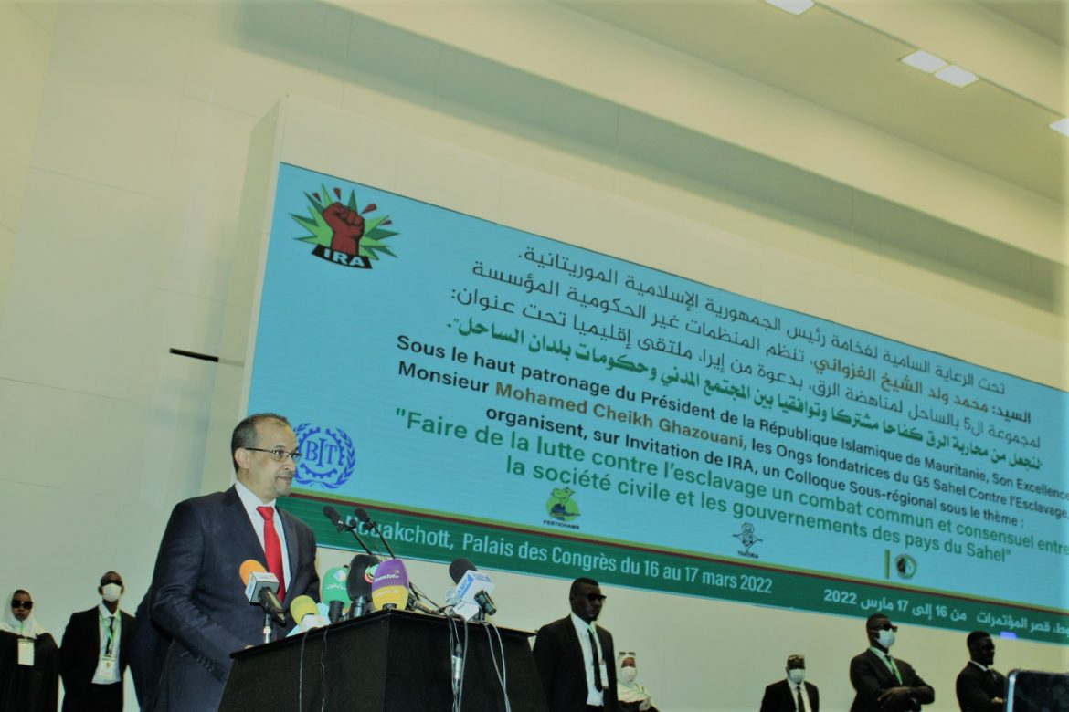 Sous le haut patronage du Président de la République, Son Excellence Monsieur Mohamed Ould Cheikh El Ghazouani, les ONG fondatrices du Réseau G5 Sahel Contre l’Esclavage ont organisé, mercredi à Nouakchott, en collaboration avec le commissariat aux Droits de l’Homme, à l’Action humanitaire et aux Relations avec la Société civile, un colloque sous-régional sur la lutte contre l’esclavage et ses formes contemporaines.